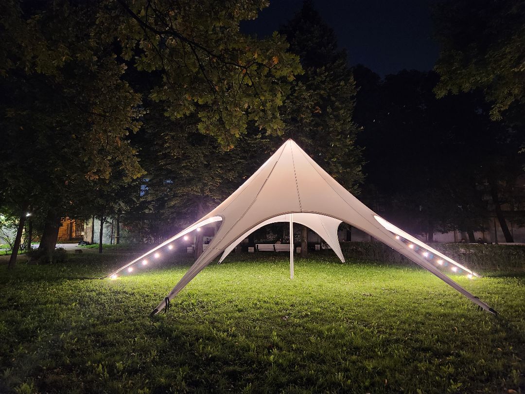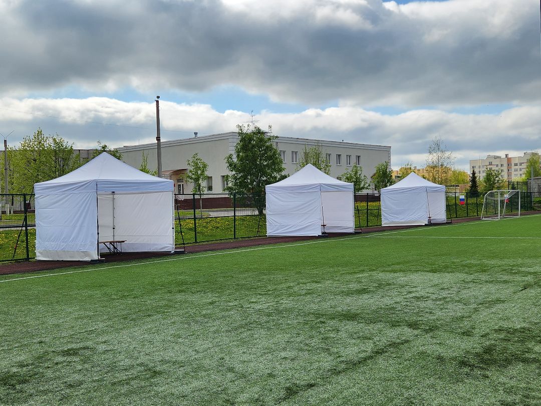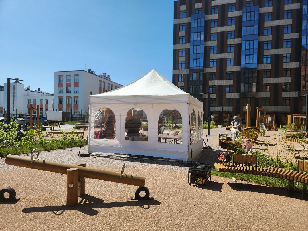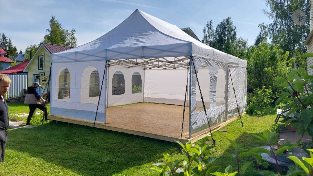 Самый первый монтаж в СПб шатров Еxpo, фото сделано нами в апреле 2007г.