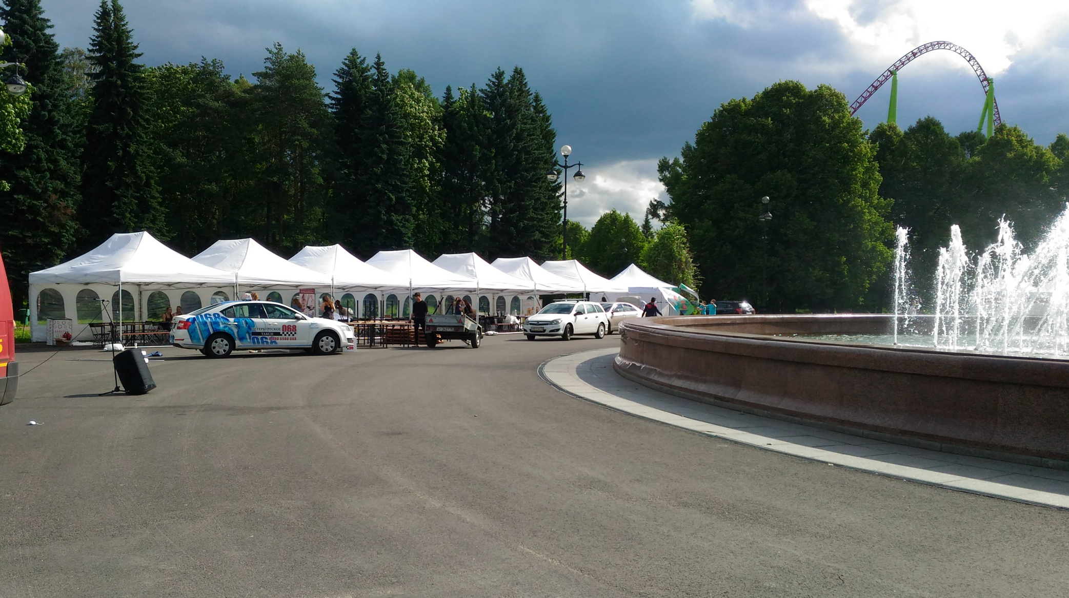 Наши шатры у фонтана в Парке Крестовский Остров